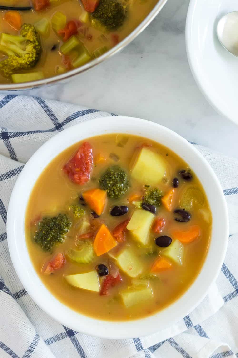 A hearty bowl of fresh seasonal vegetables simmered to perfection in a flavorful broth, seasoned with aromatic herbs and spices. This comforting and nutritious soup is packed with vitamins, fiber, and natural goodness, making it the perfect start to any meal.